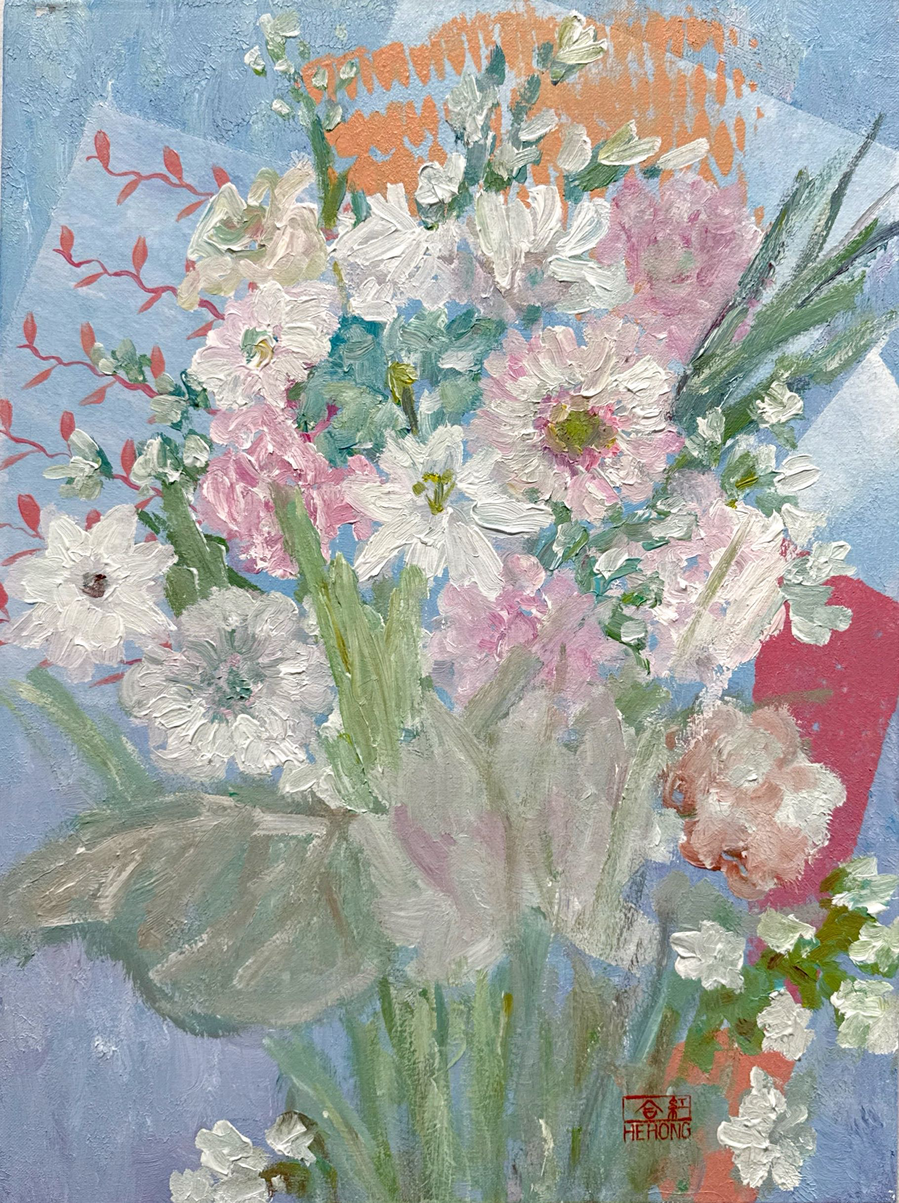 Soft Greens and Crimson with a Subtle Fragrance