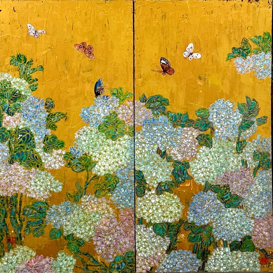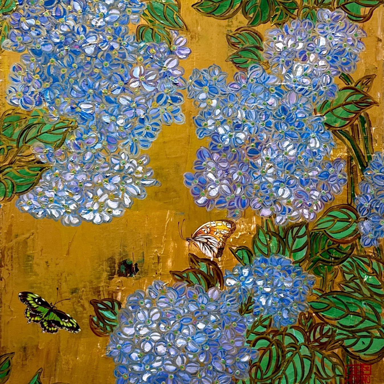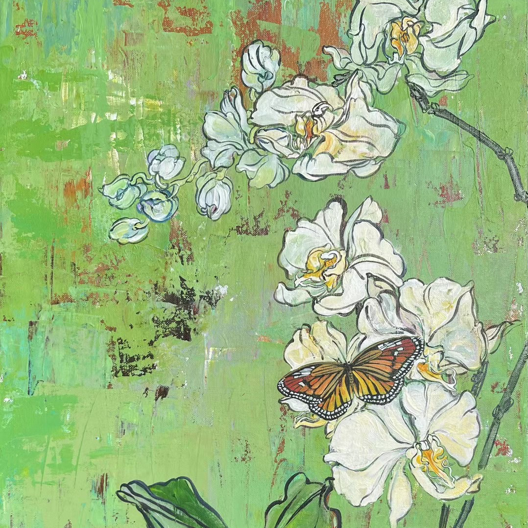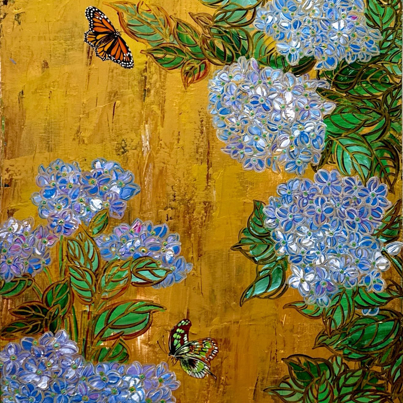 Five-Hued Blooms with Affectionate Butterflies